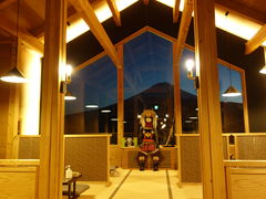 向かいの宿だったので立ち寄ってみた。初めてのほうとう。たんなる小麦粉の塊とおもいきや、いろいろな具を選ぶことができ、味変の調味料もあり、おいしい。室内の装飾もなかなかの出来栄えで、居心地がよい。