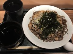 写真はもり蕎麦です。胡麻と海苔がたっぷりかかっていてつけ汁に海苔を入れて食べるのがオススメ