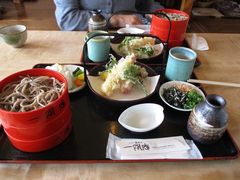 駐車場には県外ナンバーの車が多く、口コミで来店される方が多い印象でした。店内が広いのでお昼時でも待ち時間が少なくスムーズに入れました。限定のお蕎麦は地元産のそば粉を使っていて、とても薫り高かったです。