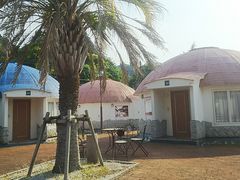 ユニークなドームハウスが目立つ、「時之栖 伊豆温泉村 ホテルオリーブの木」に隣接している日帰り温泉施設。
