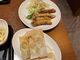中国家庭料理「ニイハオ」」羽根つき餃子とエビ春巻き、食べかけですが...(よっちん撮影)