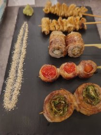 肉巻き野菜がとてもおいしいお店でした。まいったで大人気絶品野菜肉巻き♪