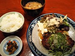 四季によって変わるメニューで、京野菜を贅沢に使った御膳が数種類あり、主菜を好みで選ぶことができる。周りの店は安いのだが、ここは1000円以上が相場の店!!私たちは「ごはんセット@1300円」をチョイス!!ご飯+おかず+豚汁+コーヒーのセットで、妻は和風ハンバーグをチョイス。