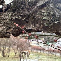 昨年12月上旬に庭の梅の枝を剪定し、水に挿してからおよそ3週間。