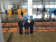 きっときっと市場インホメーションで説明を受け昼セリの建物2階からカニの昼セリ見学をしました。辺り一面カニ、カニ、カニ