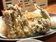 地酒×2、枝豆、天麩羅盛り合わせ、飛騨牛串焼きを注文。