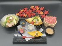 当館のご夕食ははじめにテーブルにご用意させて頂くセットメニューとご自身でお取りいただくバイキングを組み合わせたハーフバイキングをご用意しております。