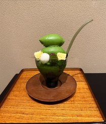 白玉やスポンジ、あんこなどが添えられ、見た目も味も京都らしい繊細さが光ります。