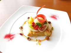 サックサクのパイの上に無花果や柿などのフルーツとさつまいものアイスがのっていました。