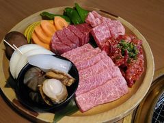 宿泊は軽井沢コテージ ログキャビンで、夕食は併設のろぐ亭で頂きました。最高級の焼肉を宿泊特価で、美味しかったです。フィレ、カルビ、ロース、味付けカルビに、魚介でホタテ、イカ、海老と野菜です。4000円のコースですが、とてもお得です。ご飯も佐久産のとても美味しいお米でした。最高です!