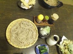 旬の山菜や川魚など、地元でとれた食材を使った一品料理が豊富に揃っており、それを肴に酒がすすむ。そば焼酎のそば湯割、岩魚の姿酒など酒通の人にはたまらない美酒もある。本場、戸隠出身のご主人が打つそばの味は格別。ぜひとも『ざる』で、旨さと喉越しを味わって欲しい。手打ちそば600円〜。