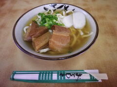 たしかメニューがおそばとジューシーだけだったと思いますが、それだけで勝負できるくらい、人気があるお店です。美味しかったですよ。お出汁は上手にとってあるし、具材の豚バラのほかに鰹のようなお魚の煮付けがのっているのが印象的でした。少し塩が強いのですが沖縄の味、一度食べてみてください。