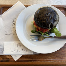 今回は竹炭を使用した真っ黒なバンズが特徴的なトマチーバーガーを注文しました〜