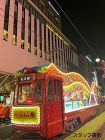 開催中はおはら祭の為に装飾された花電車が天文館電停に展示されてました!