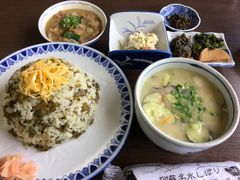 昨年の営業再開以来、約一年振りに行きました。元祖たかなめしのお店でこちらのは酸味が少しあるたかなめしで素朴で昔なつかしい味です。 今回もたかなめし定食をいただきました♪たかなめしにだご汁、ホルモン煮込みがセットになっていてかなりボリューム満点です。