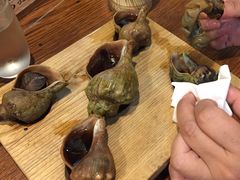 ここの甘塩っぱいダシで焼き上げたつぶ焼は良い具合に酒が入った後に頂くと旨さが倍増する不思議なつぶ焼。