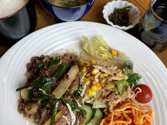 平日日替わりランチをいただきました。他メニューには、海鮮丼やステーキ丼もいろいろあります。