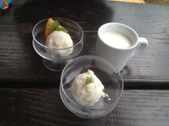 ランチは別のところに行く予定だったので、アイスと牛乳を頂きました。