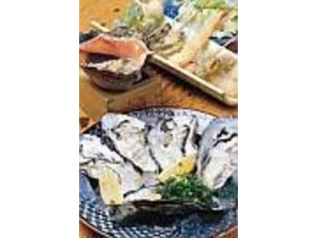 大貝つぼ焼(手前左)など新鮮な魚介類を