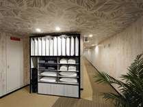 館内着ご利用のお客様はお手数ですが貸出棚よりお部屋にお持ちいただくようお願い申し上げます。