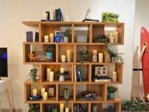歯ブラシ以外のアメニティはフロント後方のテーブルにレザー・ブラシ