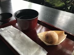 たこ焼きみたいな形をした和菓子を頂きました。焼き立てでアツアツで甘いあんこが入っていて美味しかったです。お店の外観も雰囲気があって素敵です。