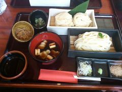 東京の日本料理店で腕をふるったご主人が水沢に戻ってきた後、ご子息と共にうどんを提供している店。うどん粉は国内・群馬産の2種をブレンド。少々濃口のつゆは味に奥行きあり雑味がない。麺はプルプルして甘みもあり柔らかさもいい。『天ぷらうどん』の大きな本しめじやまいたけ、たらの芽の天ぷらが絶品。