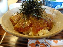 日曜日にも関わらずすぐに鰹の茶漬けができてた。醤油ではなく味噌風味。美味しかったです!