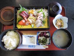 特にあてもなく小名浜港周辺で遅めの昼食場所を探して飛び込み。魚屋さんの二階の食堂。店員さんも素朴で控えめな接客。お薦めはと聞けば「海鮮丼がよくでますが、焼き物もおいしいですよ」と控えめな押し。ではと一番目立つメニューで「赤次焼き」を注文。「赤次ってなんですか?」「キンメダイのことをこの辺ではそう呼びます」とのこと。大きな干物の焼き物。油がのって最高にうまかった。中学生の息子は骨までしゃぶってました。お薦めです。