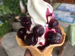 ソフトクリームは主にフルーツソースとフルーツが乗っているものが多かったです。