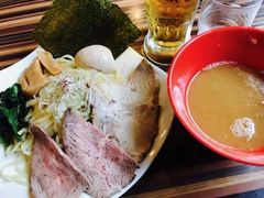 リピしているお店の一つです。チャーシューではなくてローストビーフでいただくラーメンです。いつ行っても胡椒が出にくくてイライラします…。ビールとローストビーフで一杯やりつつ、〆につけ麺で終わる食べ方が気に入っています。