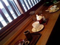 高山の古くからの街並みが保存されている地区にある喫茶店。お店は街中の雰囲気に溶け込むように存在し、店内もその雰囲気をそのまんま持ち込んだような感じ。モダンにアレンジされている。