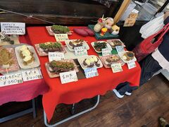 やっと、一千本団子屋さんに来ることができました。お昼少し前に着き、タイミングよくあまり並ばないでかうことができました。ずんだ、クルミ、醤油と焼き団子海苔が沢山乗ったのとさつまいものにしました。串に団子が五個もつき、具材もたくさんちで食べ応えがありました。好きで、色々食べてますが、一番美味しい。