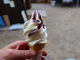で、そのアロニアソフトですが、アロニアの真っ赤な色のソフトを想像していたんですが、ちょろっとアロニアの赤いソースがかかっているだけで、アロニアの味もそんなに強く感じず、普通のソフトに毛が生えた程度でした。