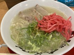 博多駅での待ち時間に食べました。細麺とあっさりとんこつスープがおいしかったです。紅ショウガもいれました。味に深みが出てよかったです。はやくておいしくて大満足です。
