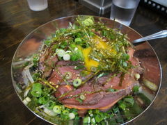東京スカイツリーのほぼ真下にある麺屋さんですが、ぼくは、ここの名物と評判のあった「ローストビーフ丼」がどうしても食べたくて注文しました。