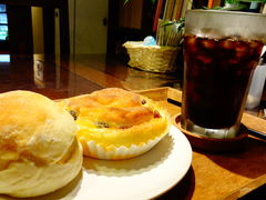 『ピーナッツコッペ』と『五豆の切株』を選び、アイスコーヒーを注文して店内で食べました。