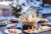雪景色を見ながら、おでんを食べてぽかぽか身体を芯から暖めるのはいかがですか?
