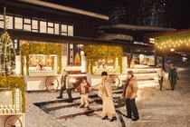 またイベント開催期間中は、ホタルストリートのオープンテラスにこたつが登場します。ゲレンデの中腹に位置するため、スキーやスノーボードで店舗の前まで滑ってくることができます。トマム ザ・タワーとリゾナーレトマムの両方からのアクセスも良いので、滑らない人も気軽に立ち寄れるスポットです。夜になると、テラスやこたつにライトが灯り、雪明かりとともにあたたかな光のある空間で、家族や友人とおでんやお酒を楽しめます。