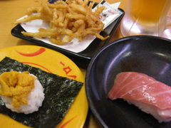 『海老フライアボカドロール』や『鉄火巻』や『コーン』の軍艦などを食べました。