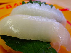 にぎりの『えんがわ』や『オニオンサーモン』など、レーンを流れている寿司を適当に取り食べました。