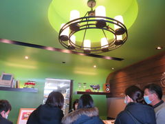お店は、外観も店内も緑を基調にしたお洒落な雰囲気。ドーナツ自体は、けっこう品揃えがあって選ぶのも楽しい。