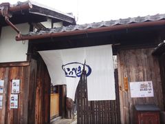 国の重要伝統的建造物群保存地区に選定されている五個荘金堂地区にあります。周囲には舟板塀や白壁をめぐらした蔵屋敷などがあり、きれいな水が流れる掘割が縦横にめぐっています。このお店も古民家を回収したものらしく、周囲の風景に溶け込んでいます。こなれた接客とはいえませんが、あたたかく出迎えていただけるので、ゆったりと寛いだ気分になれます。食事のメニューはうどん中心です。私はかやくご飯や天ぷらのついた「いっぺき御膳」、伴侶は「きのこあんかけうどん」を注文しました。麺は自家製だということで、こしのある美味しい麺でした。かやくご飯は薄味で、赤こんにゃくが入っていました。お店の雰囲気、味ともによく、価格も立地を考慮すれば妥当なところなので、また訪ねたいお店です。ただ、お昼どきには金堂地区散策の団体客が入ることがあるそうなので、確認が必要かと思われます。