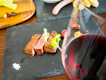 写真は赤ワインにぴったりな「北海道産美蘭牛のサイコロステーキ」。