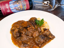 芳醇な赤ワインソースがその旨味を引き立て、ひと口ごとに豊かな味わいが広がります。
