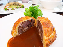 メインには、北海道産牛をじっくり煮込んだラグーをパイ生地で包み、香ばしく焼き上げた一皿を。