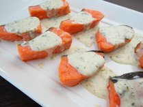 タラゴンの爽やかな香りをきかせたクリームソースは、生クリームと白ワインをじっくり煮詰めて仕上げた、まろやかな味わいで、サーモンのやさしい甘みとソースの豊かな風味が調和し、口いっぱいにやさしい余韻が広がります。
