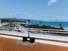 確かに客席から七里御浜と熊野灘の雄大な眺めが得られますし、屋外の展望コーナーに出れば潮騒が聞こえ、明るくて鮮やかなコバルトブルーの海が楽しめます。