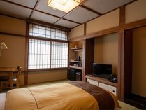 畳のお部屋にロータイプのツインベッドを備えたお部屋です。