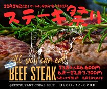 ホテル内レストラン「コーラルブルー」のディナーブッフェでは、季節に合わせた食材を使用した"特別メニュー"を月替りでご用意しております。